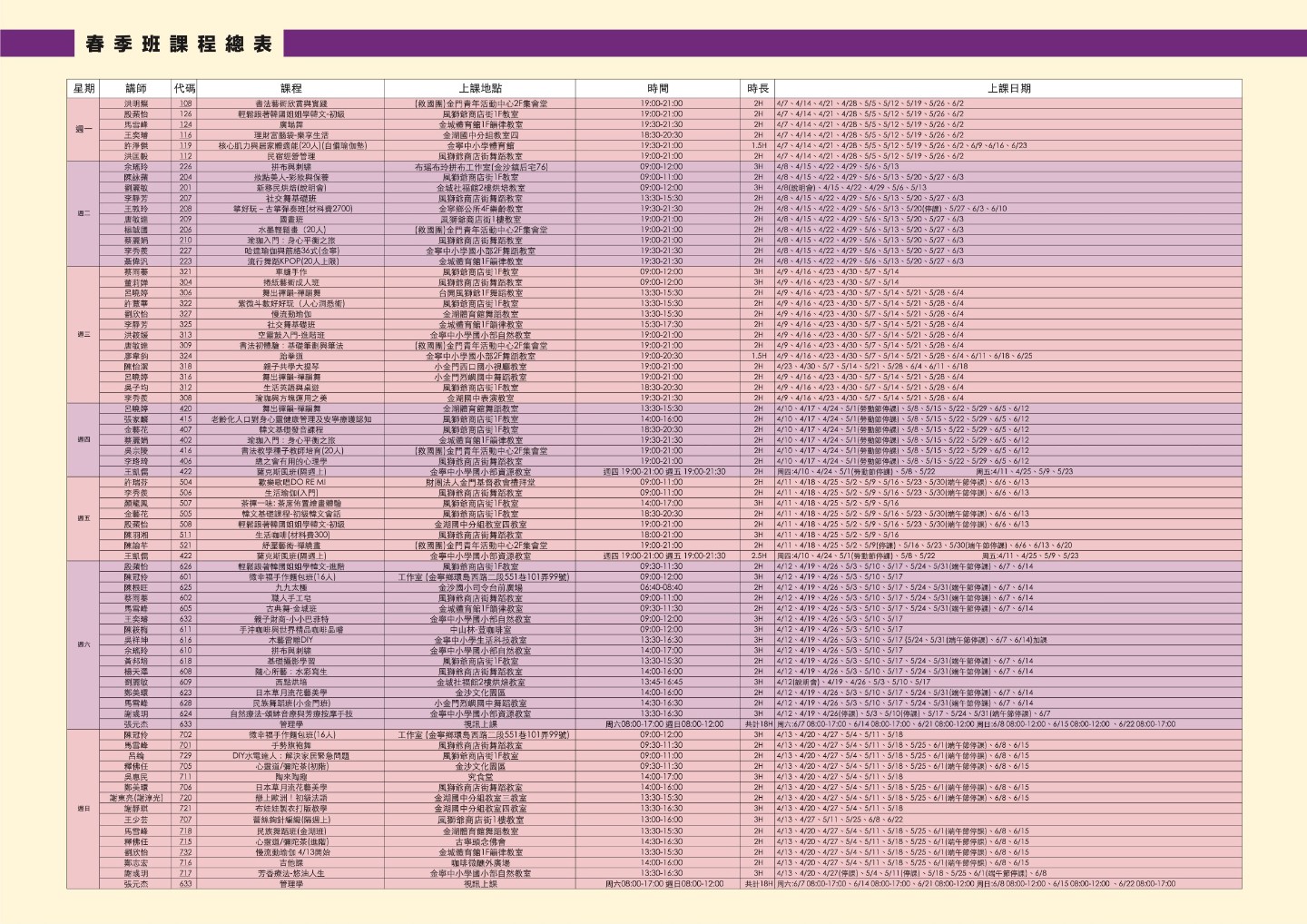 金門社區大學金門社區大學 114 年春季班報名公告