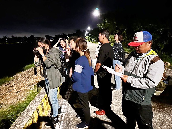陳筱梅專案經理(友善水獺生態給付輔導團隊)則帶領夜間觀察,實地進入金門濕地辨識足跡與行為紀錄。