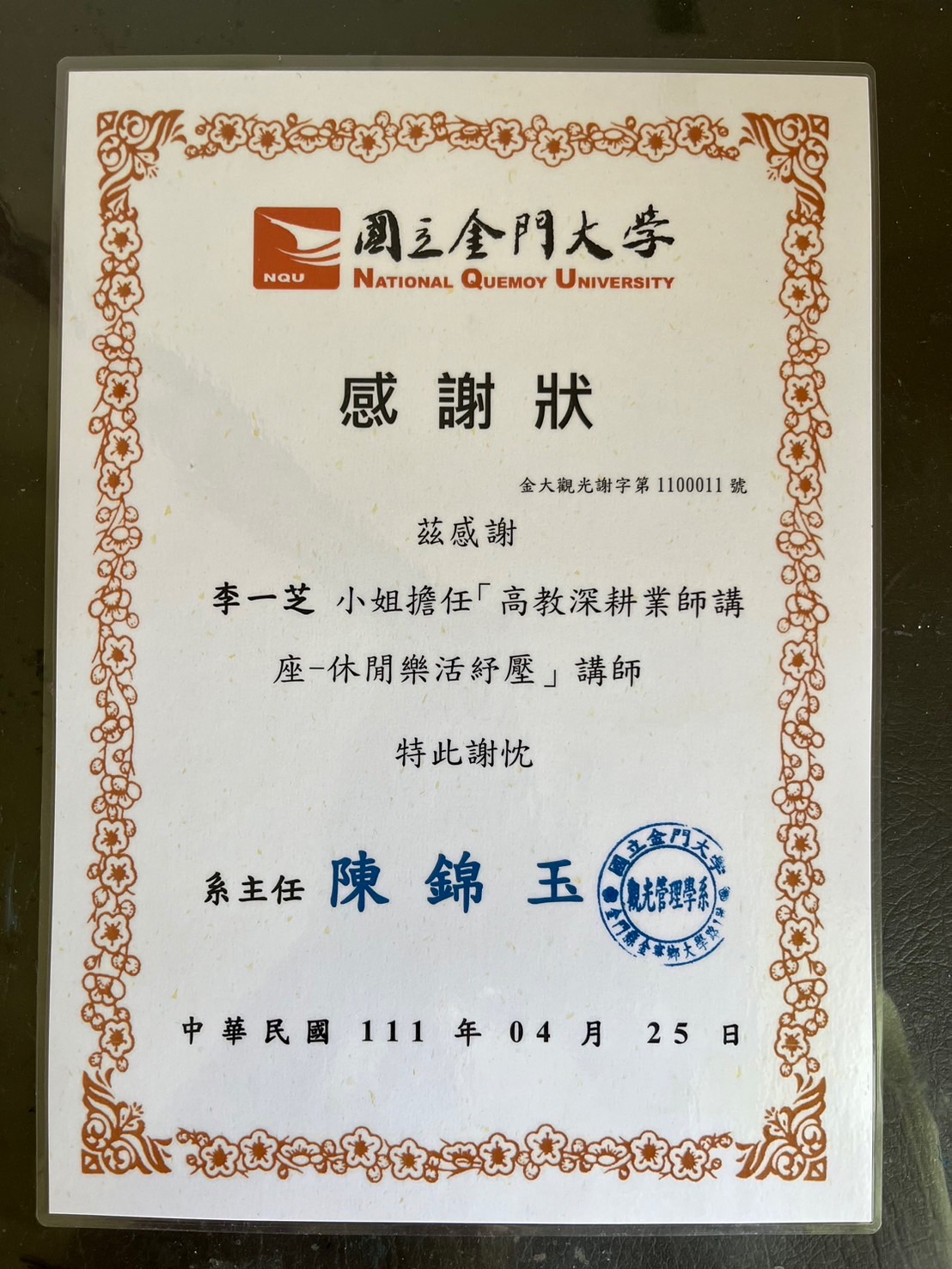 1.國立金門大學觀光管理系