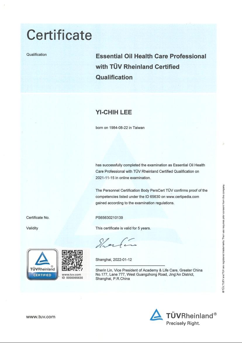 2.教育部乙級芳療保健師
